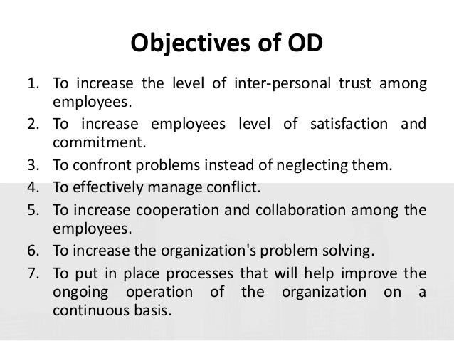 Organizational development initiatives do not automatically succeed. For example, HR might decide to implement a new performance management system but in order for this to be considered OD it needs to be aligned with other parts of the business in an. Find the best Organizational Development Specialist resume examples to help you improve your own resume.