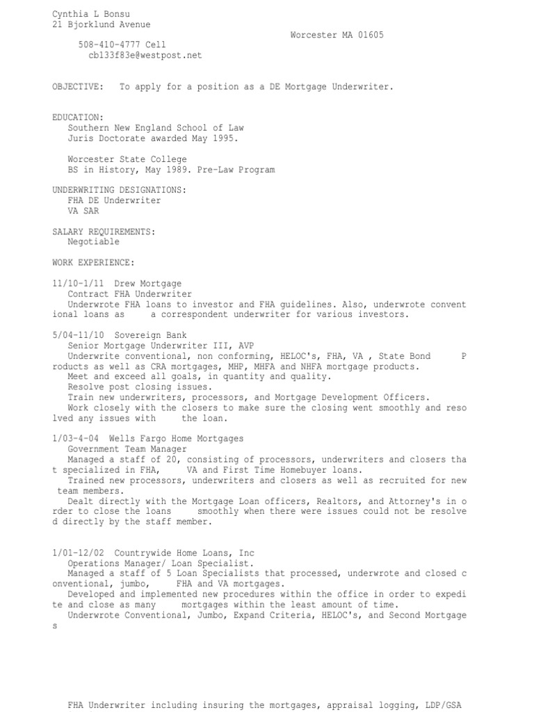 The underwriter's job is to assess delinquency risk Here's an example from Fannie Mae's underwriting guidelines.