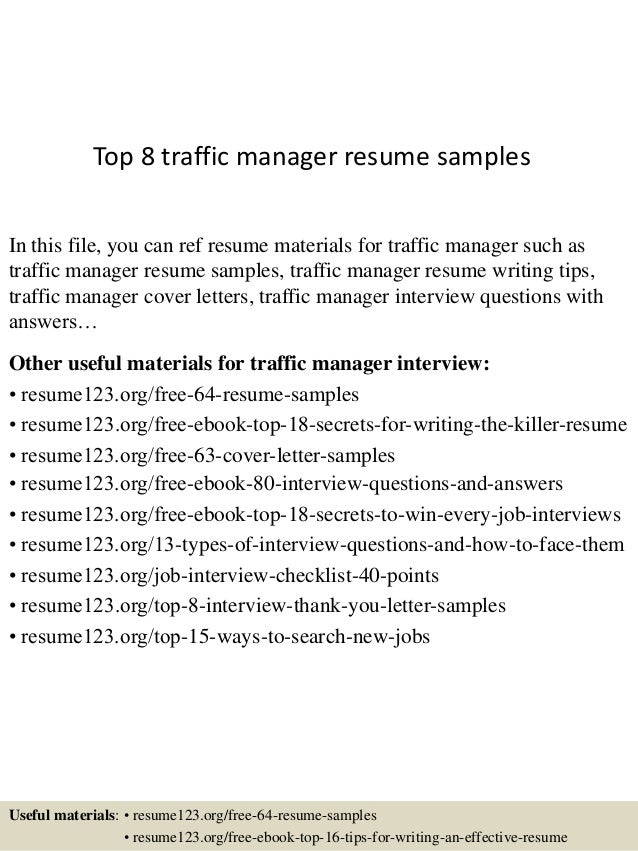 Top 8 traffic manager resume samples