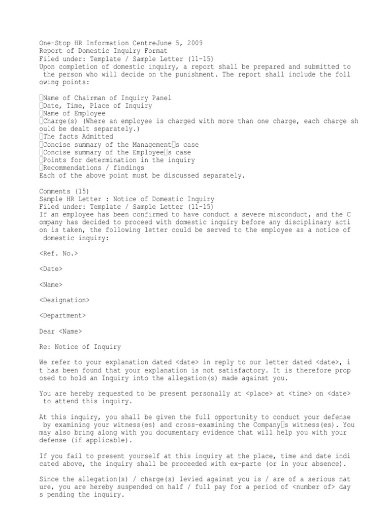 Enquiry Format | Breach Of Contract | Employment