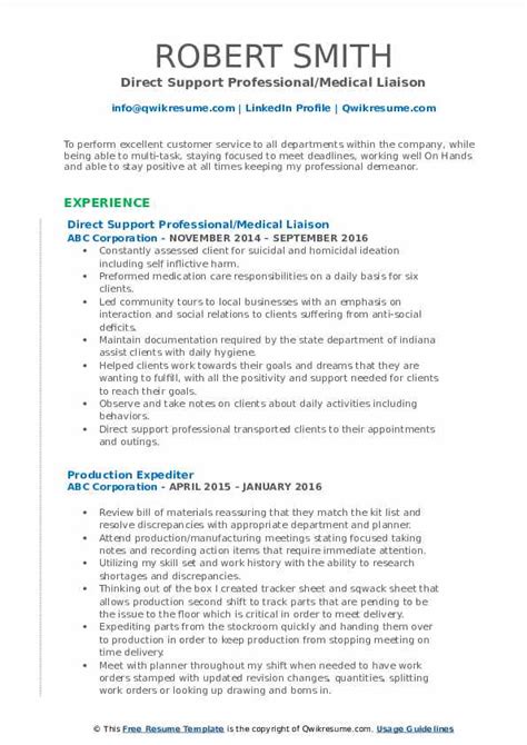 Employers prefer candidates with some background on DSP work. Direct Support Professional Resume Samples This page provides you with Direct Support Professional resume samples to use to create your own resume with our easy-to-use resume builder. Then borrow language and keywords from the job description to highlight experiences from your resume in the middle paragraph.