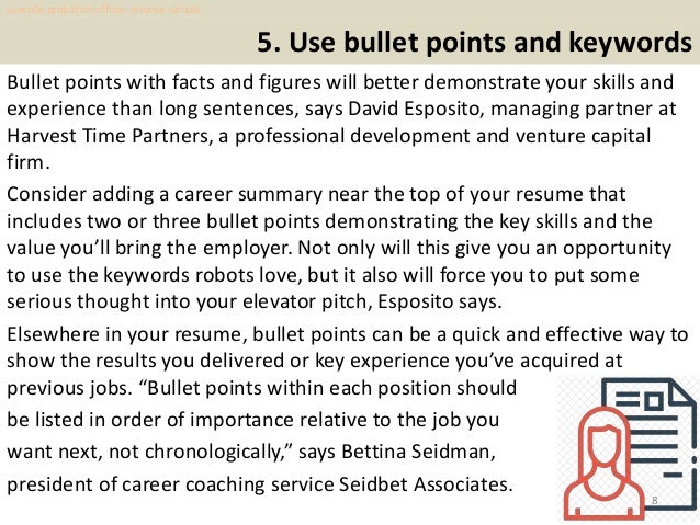 Juvenile Probation Officer Resume. This involves helping in the juvenile's rehabilitation by visiting his home to ensure he and his family are meeting all of the conditions of his release and also by providing counseling to the. Juvenile probation officers supervise and track juveniles on probation or parole.